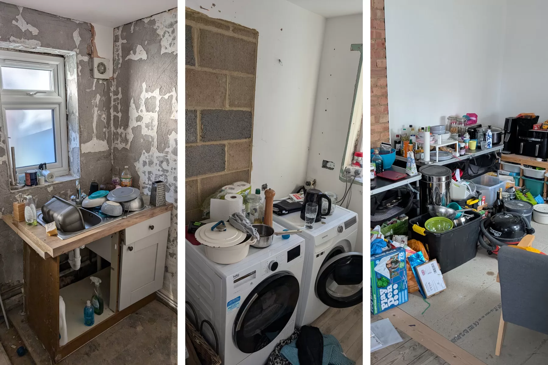 During our own home extension, the kitchen ended up spread across three different rooms. At one point, we were washing dishes in a makeshift sink, cooking on a temporary hob in the corner of a building site, and balancing pots on top of the washing machine.