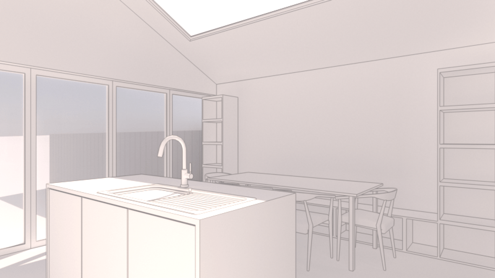 The client wanted to remove the roof from an existing conservatory to improve the thermal performance of the space and improve the open-plan living with a new kitchen/dining/family space.