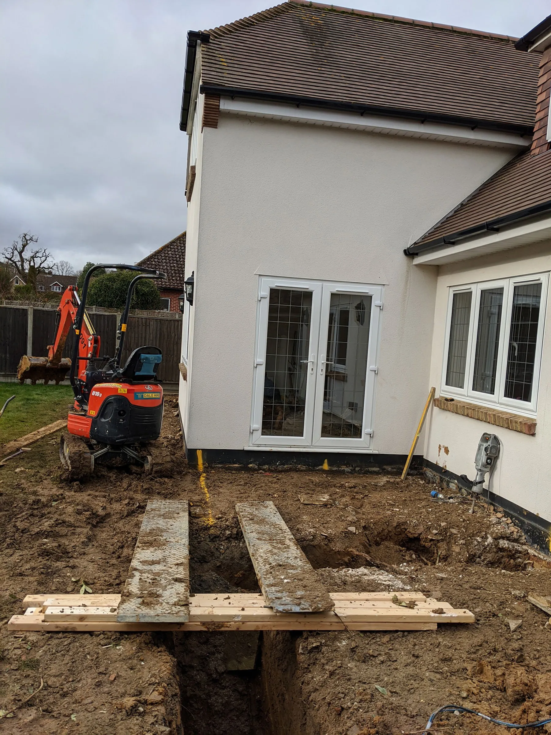 Work is now well underway in Shenfield at our site just off Hutton Mount. The contractor has made rapid progress stripping out the building and is making light work of excavating the foundations ready for the pour. Hopefully the weather holds off long enough that the guys can get this stage of works completed without delay.