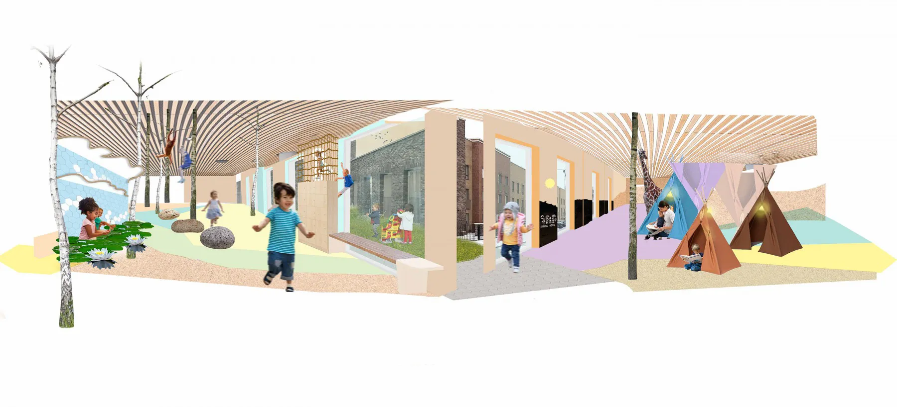 We started the project by researching the needs of the children and the impact a space can have upon their sense of security, curiosity, and desire to learn from others through play. We devised a loose scheme with initial ideas for discussion with the client, and to enable a Quantity Surveyor to put together a cost plan.