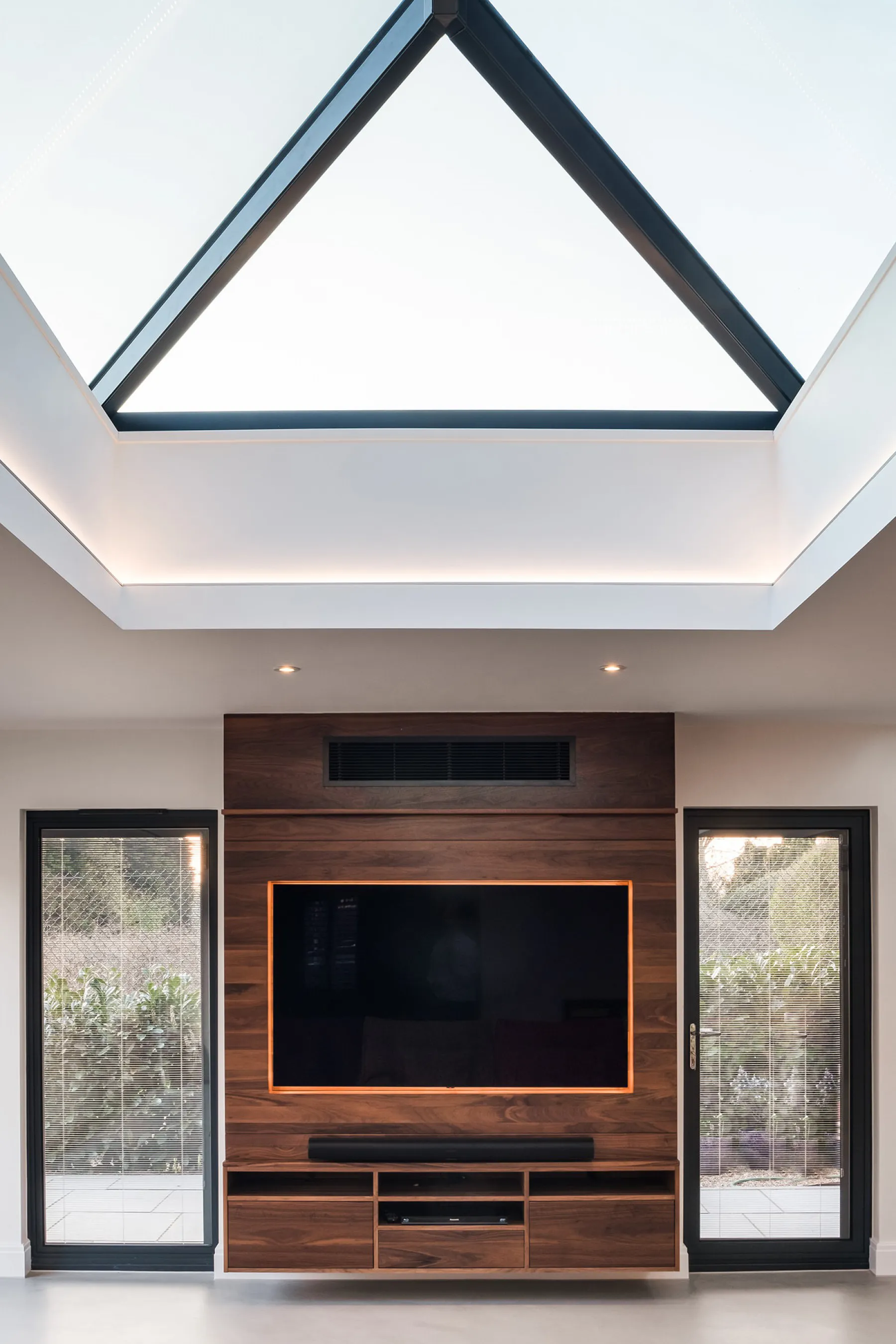 The main challenge for us was that the infill extension had little space to accommodate the air conditioning unit needed to regulate the room temperature and ensure that the south-facing rear aspect didn’t overheat in the summer.